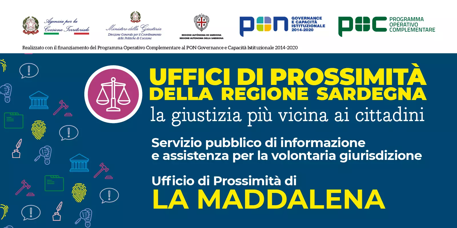 Il Comune di La Maddalena, in collaborazione con il Tribunale di Tempio Pausania ed il Centro Regionale di Programmazione della Regione Sardegna, vi invita all'incontro di inaugurazione dell'Ufficio di Prossimità di La Maddalena.